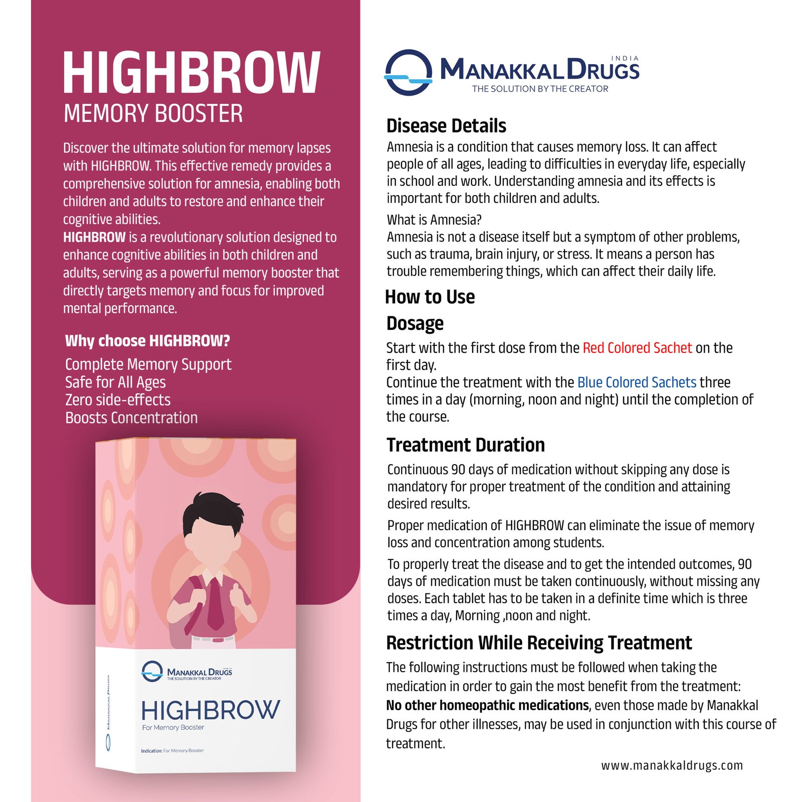 - Boosts Concentration: In addition to improving memory, HIGHBROW enhances focus and attention, aiding in academic and daily tasks.
